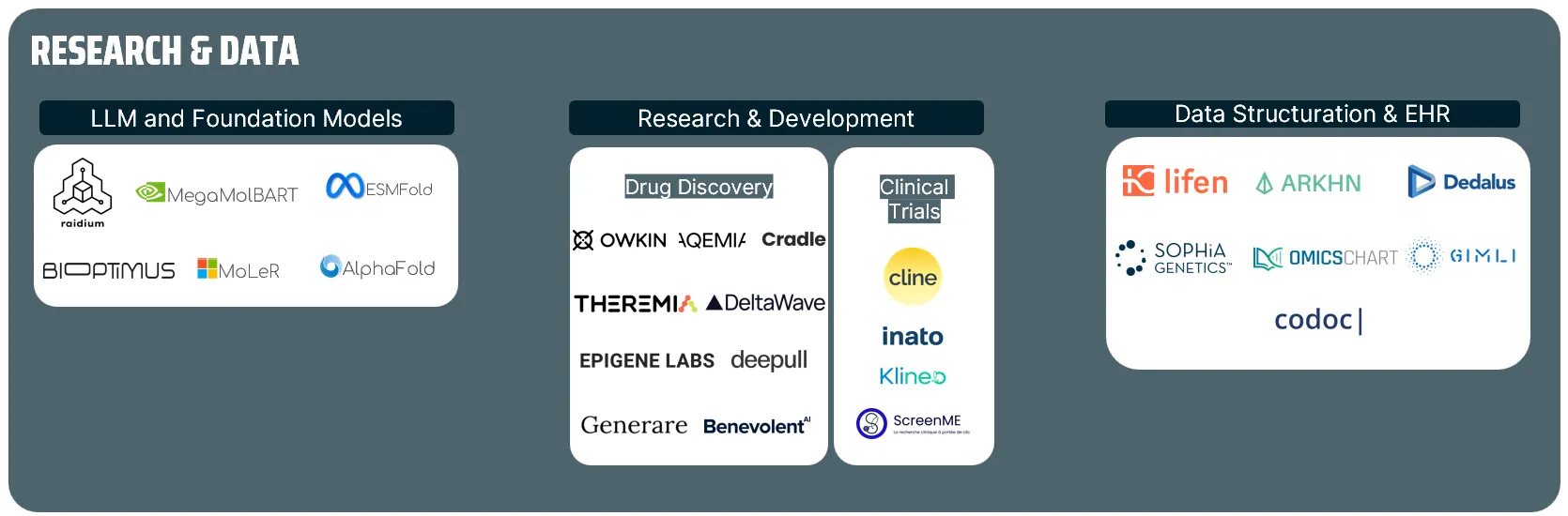 ⇒ We notably chose to highlight the upraising of foundation models helping scientists understand proteins, small molecules, DNA, and biomedical text.