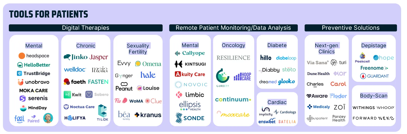⇒ We especially tried to underline the booming sector of specialized solutions per sector, mental health and oncology being the most addressed.